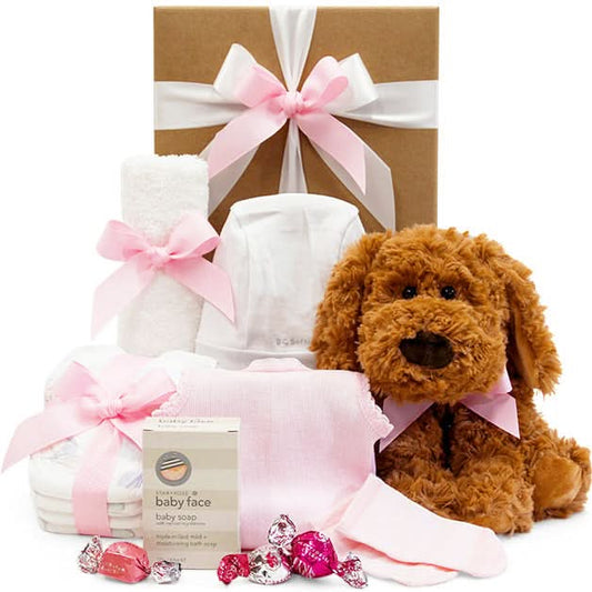 Celebrate the precious arrival of a baby girl with a heartfelt hamper from The Complete Basketcase. Our carefully curated gift hampers brim with adorable baby clothes, essential items, and sentimental treasures, making them more than just ordinary gifts—they encapsulate the sheer joy of having a baby girl in a family.